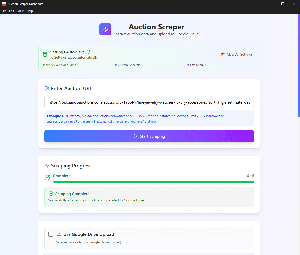 Automated Data Scraping — Extracted product lots directly from A&O’s auction site and formatted them instantly.