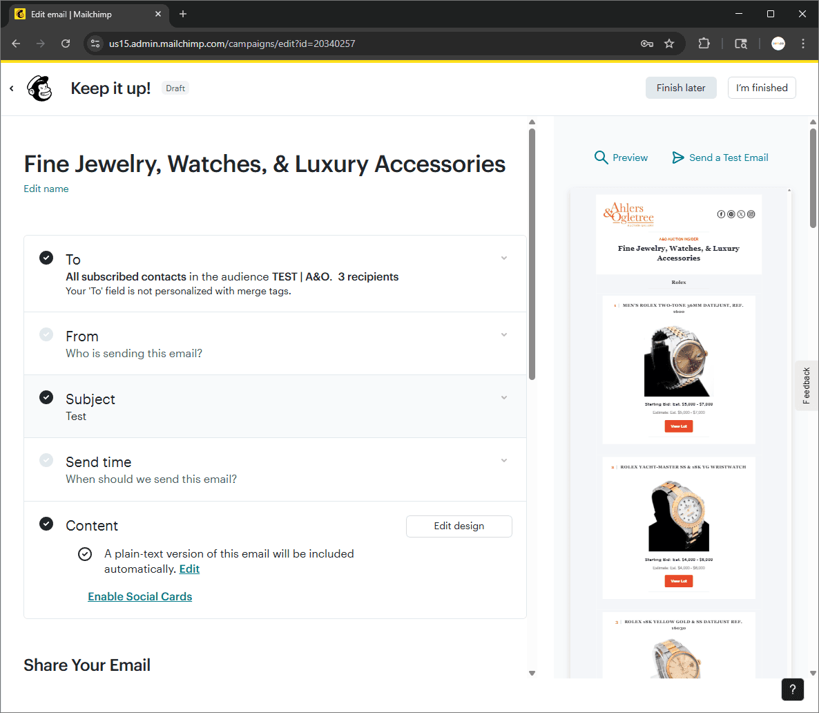 sem.co developed a custom Auction Scraper + Mailchimp integration: