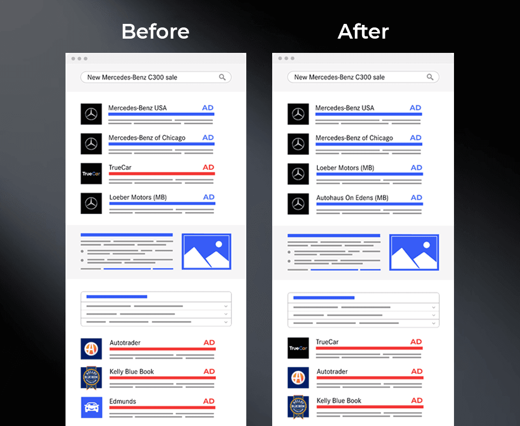MBUSA ran a 6-month, dealer-collaboration SEM pilot with Google to stop cross-account bid inflation and push auto-endemics down-page. Result: 27% lower CPC and $9M in projected annual efficiencies.